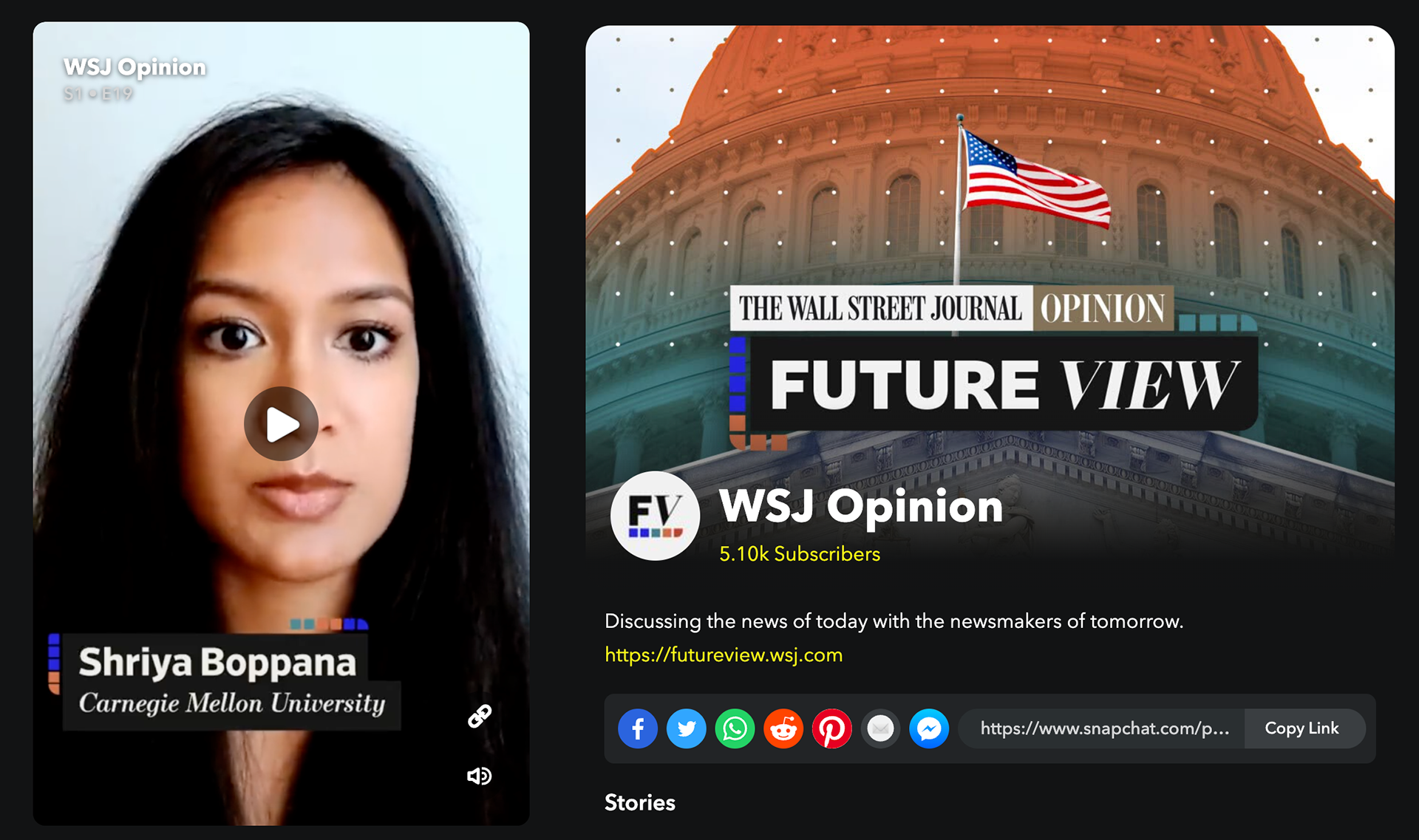 Shriya was included in the new WSJ Future View Snapchat series debating the pros and cons of the death penalty